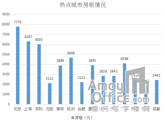 根据中国房地产协会发布网站数据显示,从利用集体建设用地租赁住房试点13个城市而言,每100平方米出租房,北京房租最高,每一百平方米出租房源达到7776元。上海、杭州、广州每100平方米的平均租金超过4000元。试点城市中,沈阳、合肥、肇庆房租相对较低,在2000元左右。